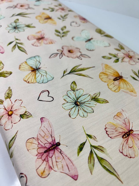 Penelope Butterfly Blossom Pink 100% Cotton, Cate & Rainn Penelope Butterfly Blossom Pink Cotton Fabric, Quilting Cotton