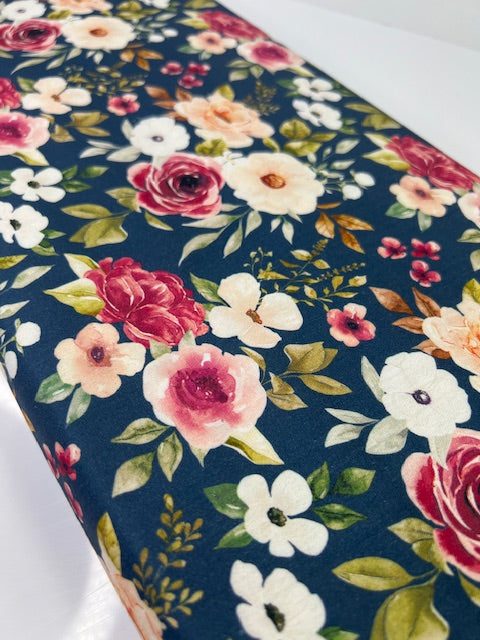 Felicity Floral Navy Blue 100% Cotton, Cate & Rainn Felicity Floral Navy Blue Cotton Fabric, Quilting Cotton
